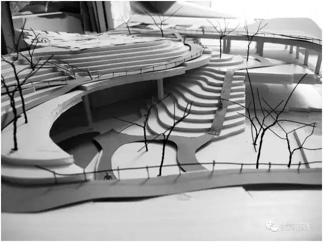 由此高差布局的水景,也成了山地景觀中的自然瀑布水景。層次豐富、錯(cuò)落有致的高差關(guān)系,由于從根本上徹底改變了原有場(chǎng)地平直、呆板的空間,哪怕我們即使用最簡(jiǎn)單的模型來表現(xiàn),山地峽谷自然景觀都已顯得極為真切!