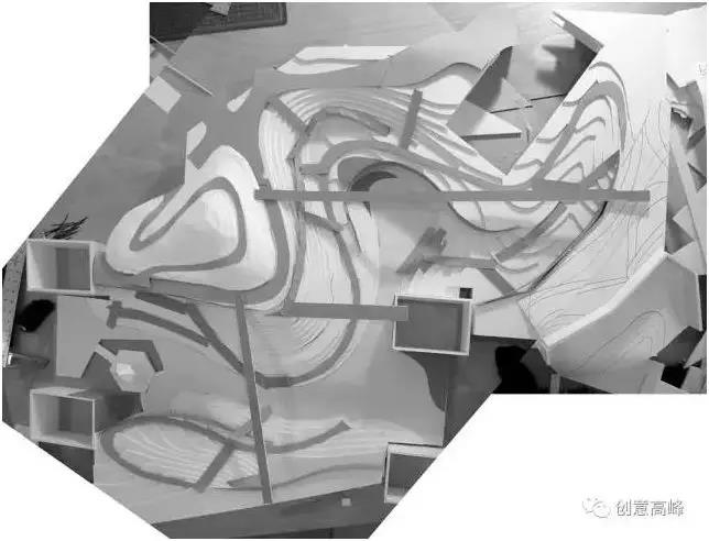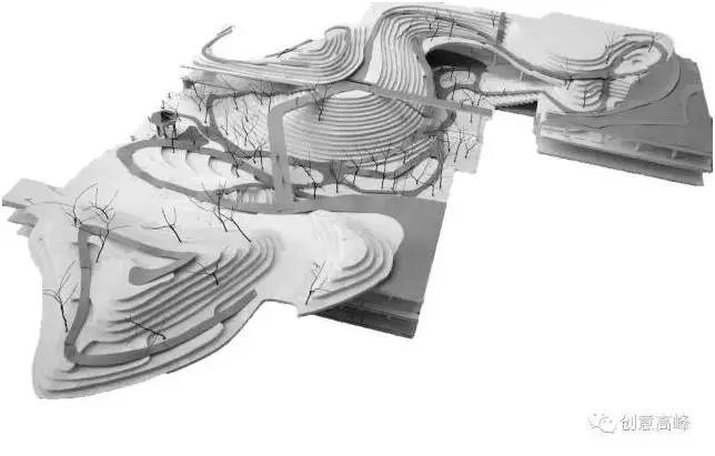他的方案所營(yíng)造出來的不僅僅是某一個(gè)局部綠化造景的自然怡人,而是重現(xiàn)了山地、峽谷的自然風(fēng)貌,從場(chǎng)地整體結(jié)構(gòu)上重塑了地塊的原有狀態(tài)。