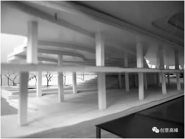 對(duì)地下車庫(kù)進(jìn)行局部改造,將原有一部分地庫(kù)打斷,如此以來,地形高差就不再是地面堆坡的高度,而是從坡頂?shù)降貛?kù)底層的大落差!